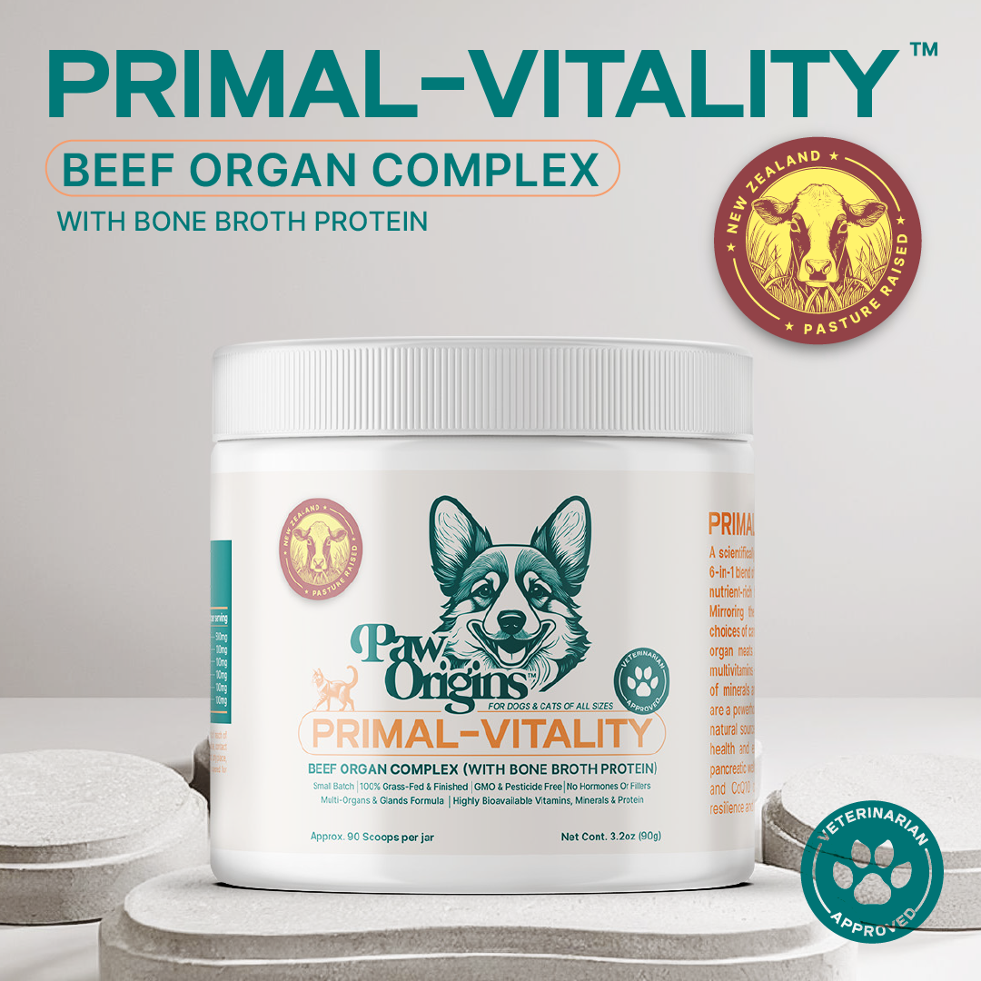 Primal-Vitality™ makes it effortless to enhance your dog's diet, be it kibble, cooked, or raw, by offering these nutritious organs in a convenient, powdered form while maintaining the highest levels of bioavailability and nutrient profile. Nothing comes close to Primal-Vitality™.