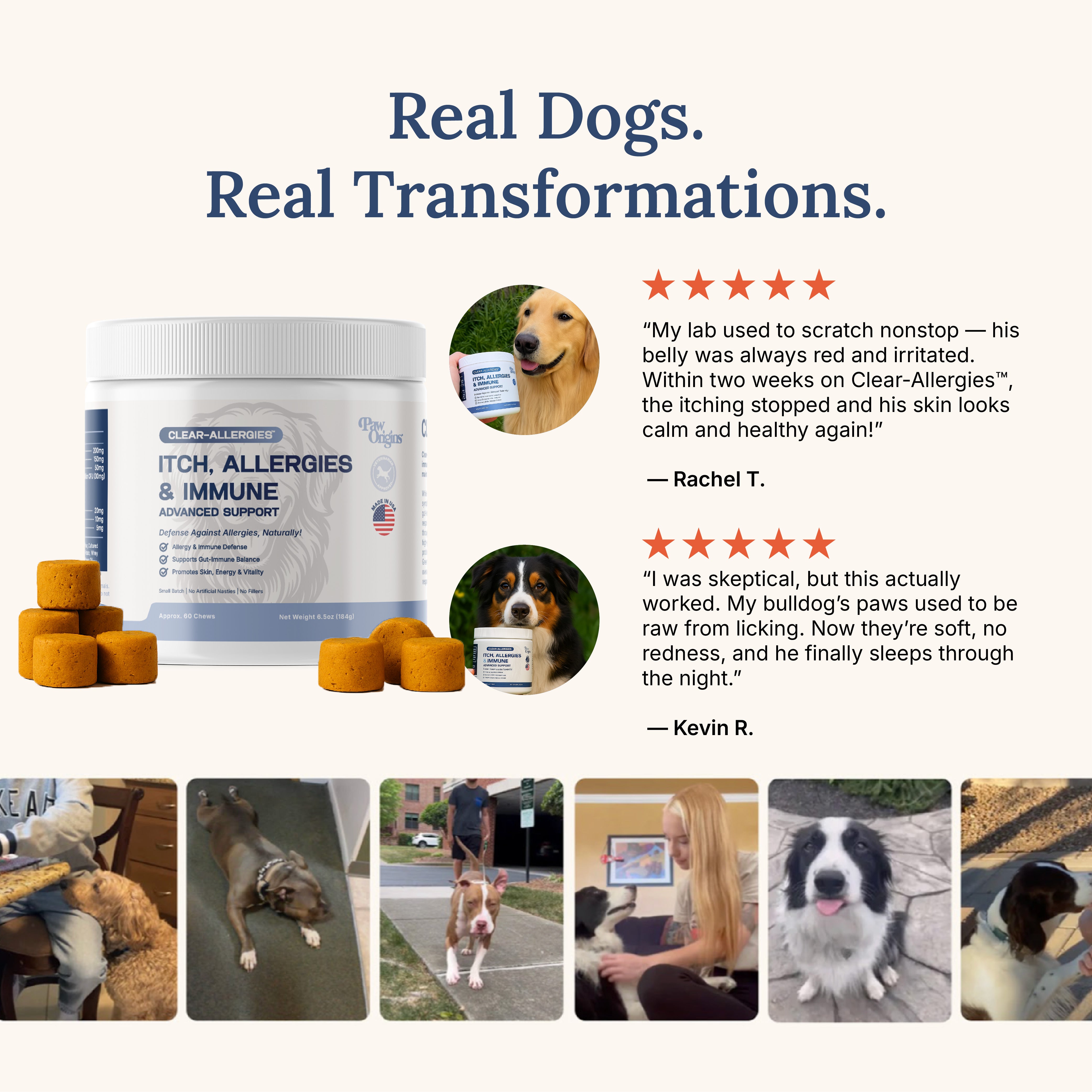 When you choose Clear-Allergies™, you're not just managing symptoms — you're giving your dog a complete roadmap to identify triggers, eliminate allergens, and rebuild immune resilience from the inside out.