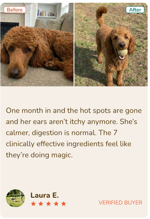 Thousands of pet parents have already seen meaningful improvements in their dogs’ itching, skin comfort, and overall well-being. We’re confident you will too.