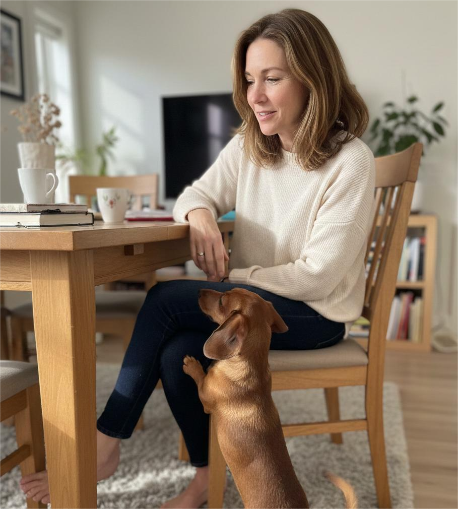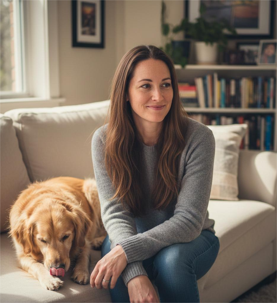 "Bailey is my 11-year-old Labrador, and her allergies had gotten so bad I worried I'd have to make a difficult decision soon. She'd wake me up at 2am scratching so hard the bed shook, her paws were stained from constant licking, and she seemed absolutely miserable. My vet said it was 'just old age allergies' and gave her Benadryl, which made her drowsy and destroyed her gut. After watching Dr. Dench's video about the gut-immune connection, I tried Clear-Allergies, and the change was incredible. The nighttime scratching stopped, and now eight weeks in, she's playful and energetic like she was years ago. Her paws are healing, and she even seems happier!"