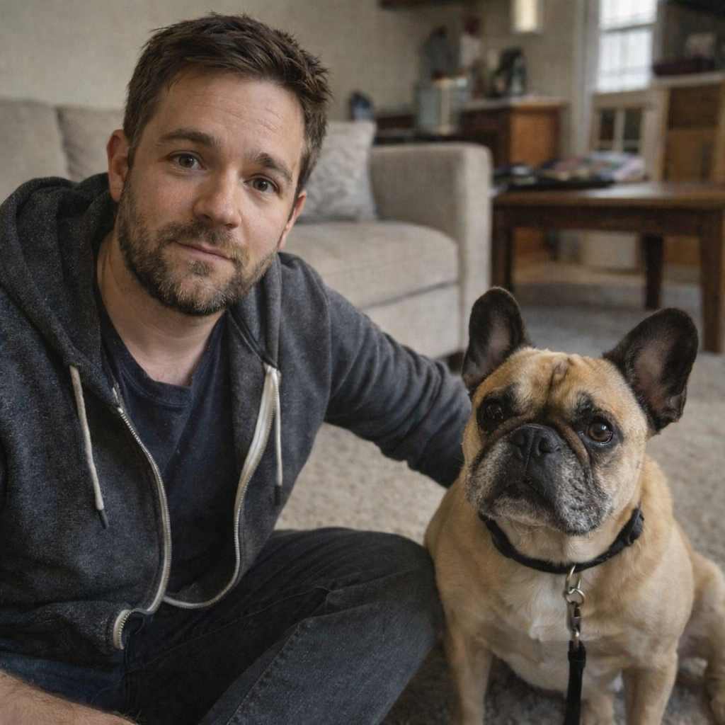 "Oliver is a 4-year-old English Bulldog who scratched himself raw for two years straight. His belly was covered in hot spots, and his paws bled from constant licking. We spent a lot of money on solutions like Apoquel with barely any improvement, and I was considering rehoming him. Within three weeks of starting Clear-Allergies, the hot spots completely disappeared and his belly went from angry red to normal pink. Now he sleeps through the night without a single scratch, his coat is shiny, and he's stopped the obsessive licking. I can't recommend it enough!"