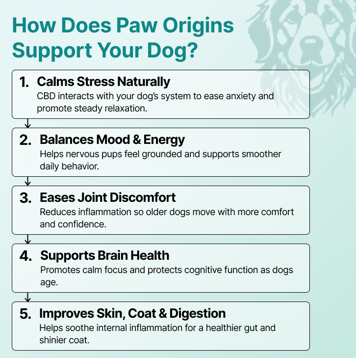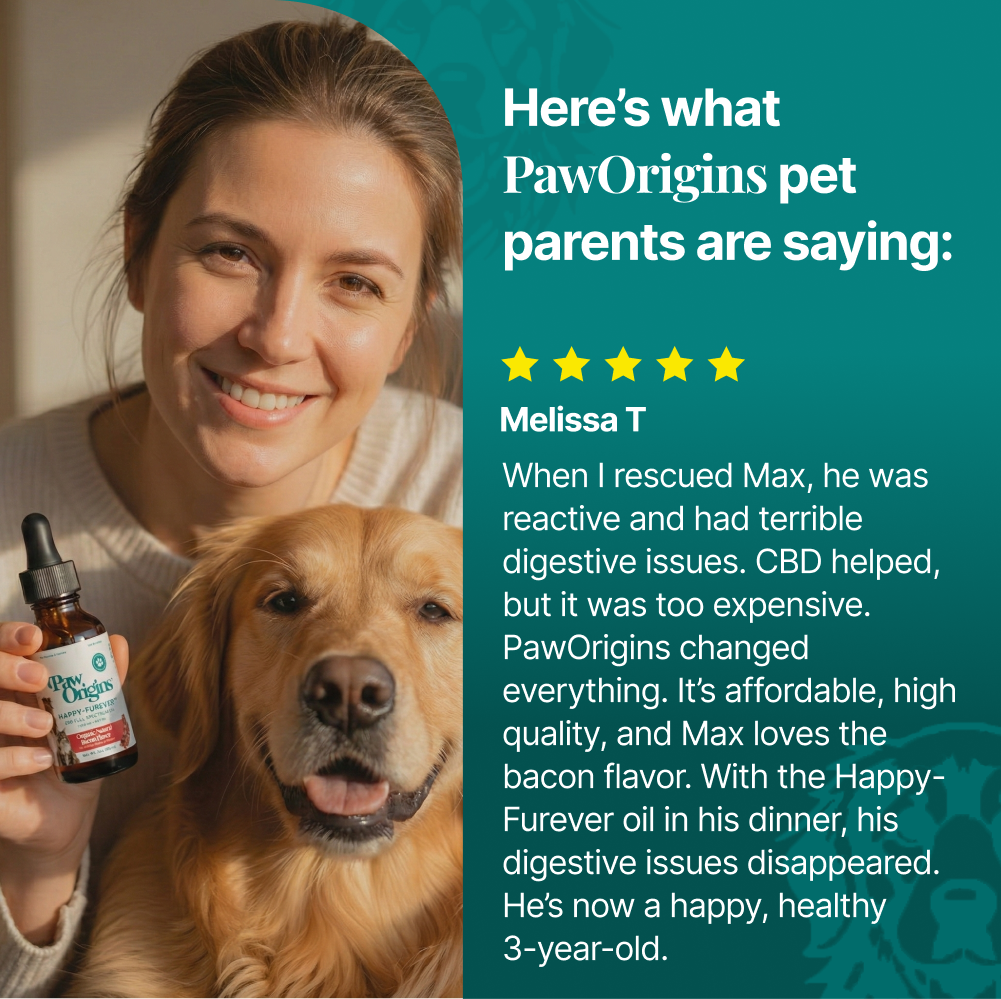 The statements made regarding these products have not been evaluated by the Food and Drug Administration. The efficacy of these products has not been confirmed by FDA-approved research. These products are not intended to diagnose, treat, cure or prevent any disease. All information presented here is not meant as a substitute for or alternative to information from health care practitioners. Please consult your health care professional about potential interactions or other possible complications before using any product. The Federal Food, Drug, and Cosmetic Act require this notice. This is an advertisement for PawOrigins® and is intended for informational purposes only. All information provided by PawOrigins® does not constitute medical advice and should not be used as a replacement for veterinarian advice. The stories shared on this page are drawn from the real-life experiences and insights of actual individuals, including a veterinarian who has generously contributed their expertise. Our intent is to deliver meaningful and pertinent content to our audience. However, every dog is unique and the results portrayed in this story and the comments may not be the results that you or your dog achieve with these products. Results may vary.