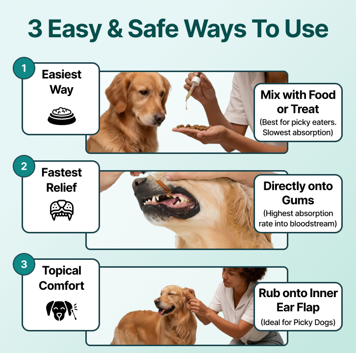 Start on a lower dosage to ease your dog into it. Best administered with food or after meals.