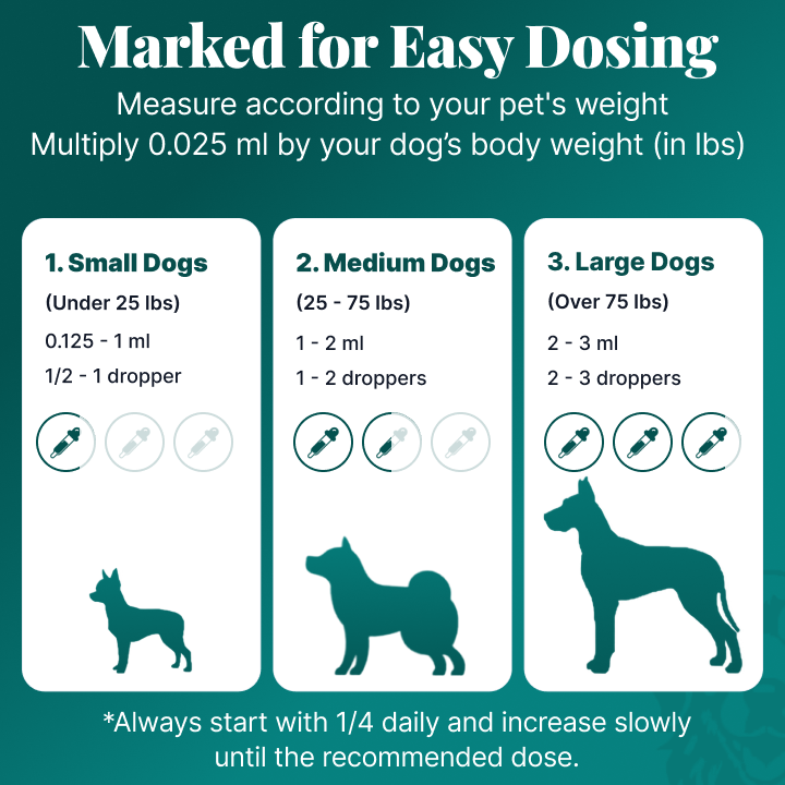 - 25 - 75 lbs, use between 1ml. to 2ml per day.